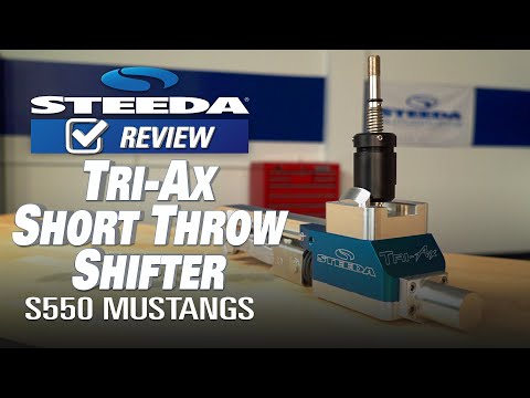 Steeda's S550 & S650 Mustang MT-82 Tri-Ax Race Short Throw Shifter is manufactured from high-quality aircraft-grade aluminium making it 20% lighter than the competitions' shifter assemblies. The shift lever itself on our Tri-Ax is made from heat-treated and nickel-plated 4140 steel, making it the strongest part out on the market. All hardware is stainless steel for the highest corrosion-resistance possible. Included in our kit is hardware to tighten up the factory shift knob perfectly into a locking position. These parts have been put to the test on the street and the track and are proven not to bind under extreme conditions or temperatures.