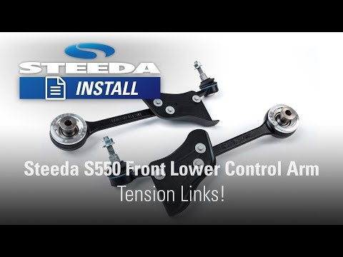Steeda's industry-first S550 Mustang Tension Links, are a must for all lowered 2015+ Mustangs. These pieces have air scoops built onto them for added brake cooling and a higher durometer bushing than OE Performance Pack, which reduces bushing deflection, resulting in one major benefit: increased steering response. The Front Control Arm bushing in this kit can be upgraded to our 555-4128 - Steeda S550 Mustang Front Control Arm Bearing Kit to eliminate bushing deflection and reduce alignment and camber changes in high-performance driving. This, in turn, helps to increase steering response, decrease body roll, and increase cornering grip, helping you turn even better lap times!